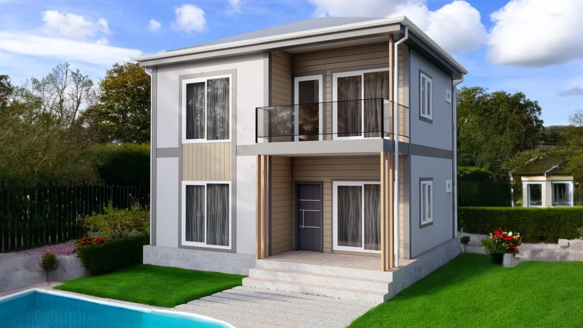 3D Çelik Prefabrik Yapı Çift Kat Prefabrik Ev 104 m² Model B160 Özellikleri