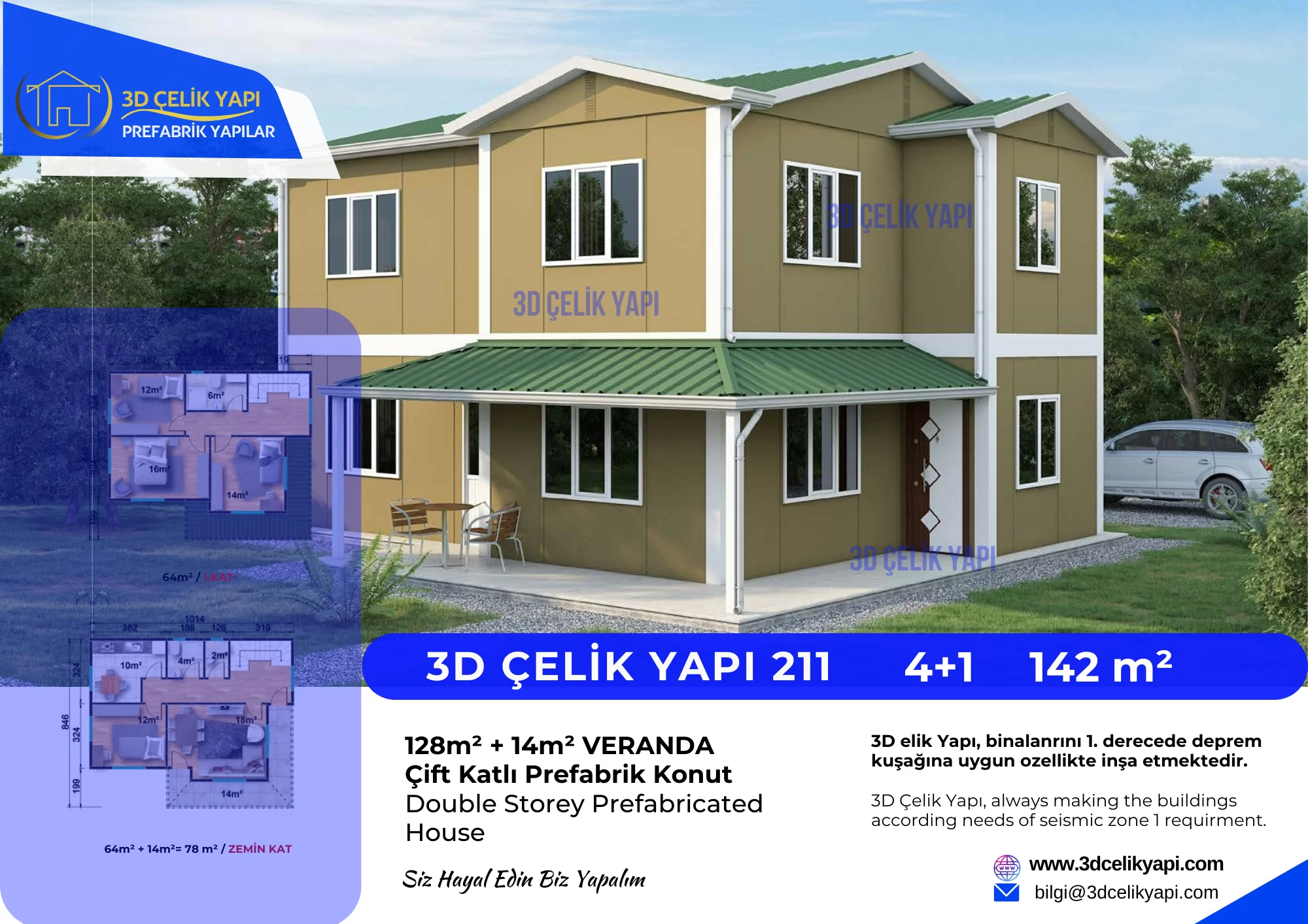 Çift Kat Prefabrik Ev 142 m² Model 211 Özellikleri