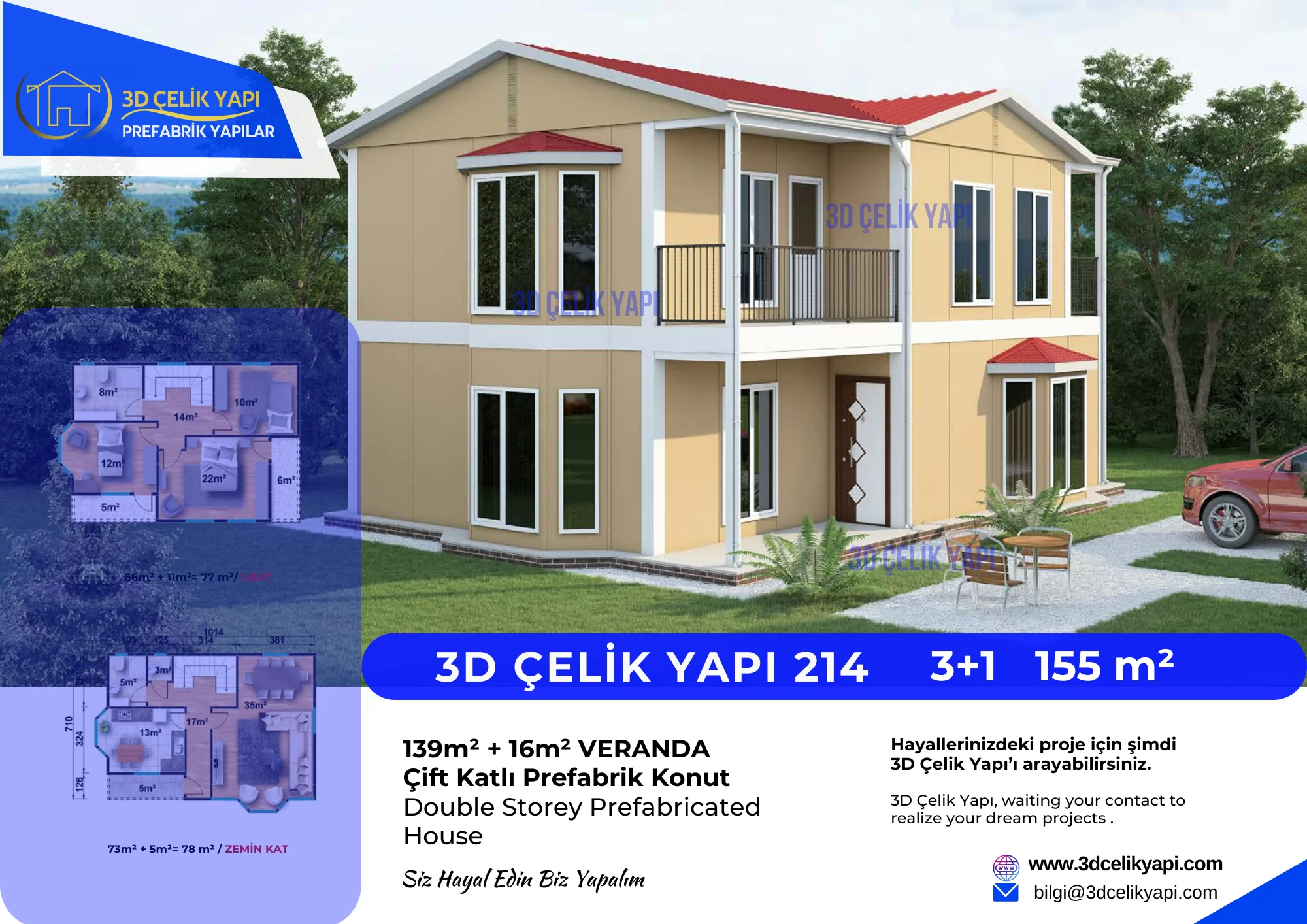 Çift Kat Prefabrik Ev 155 m² Model 214 Özellikleri