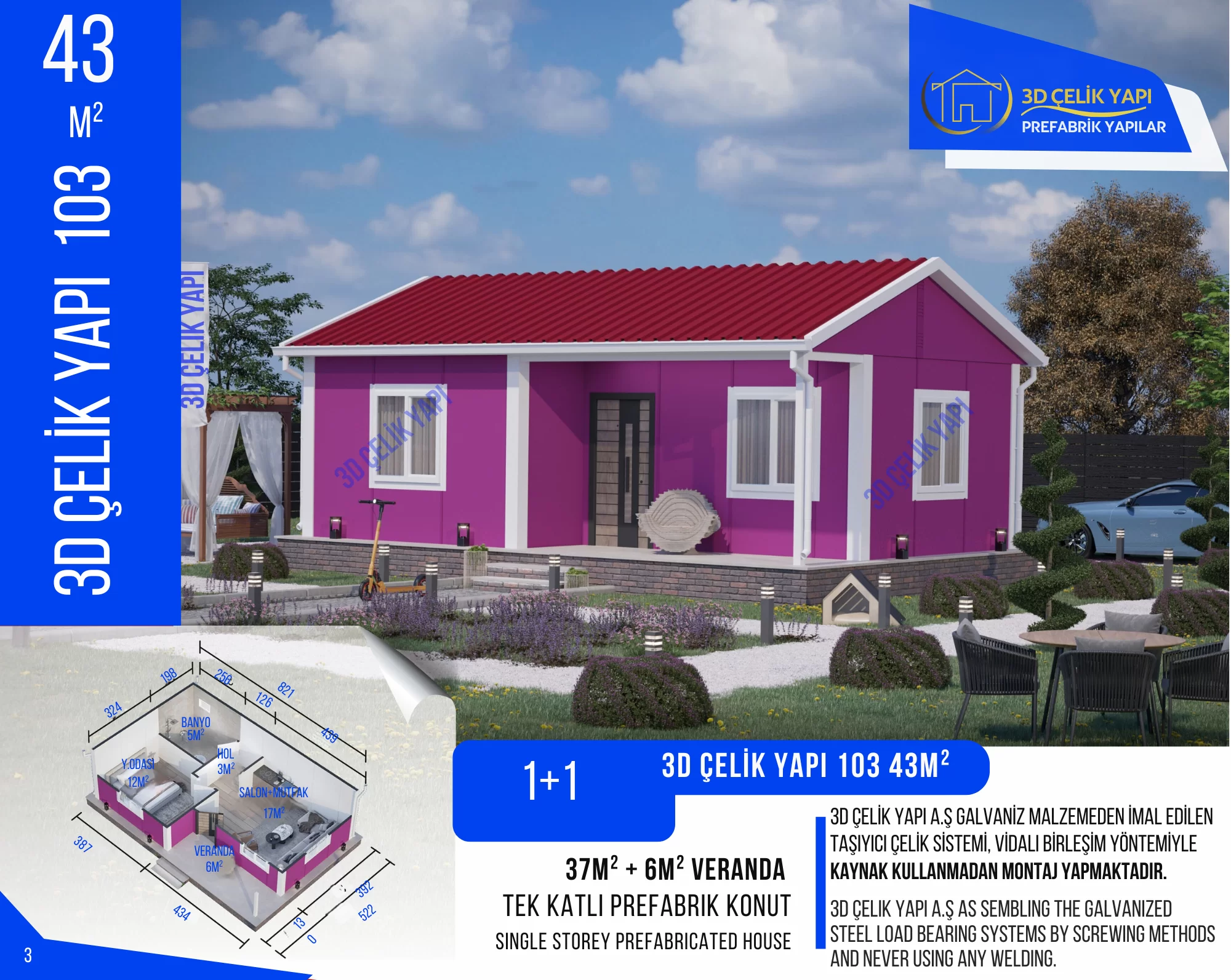 Bu prefabrik evin fiyat ve diğer tüm detayları için bizimle iletişime geçin.