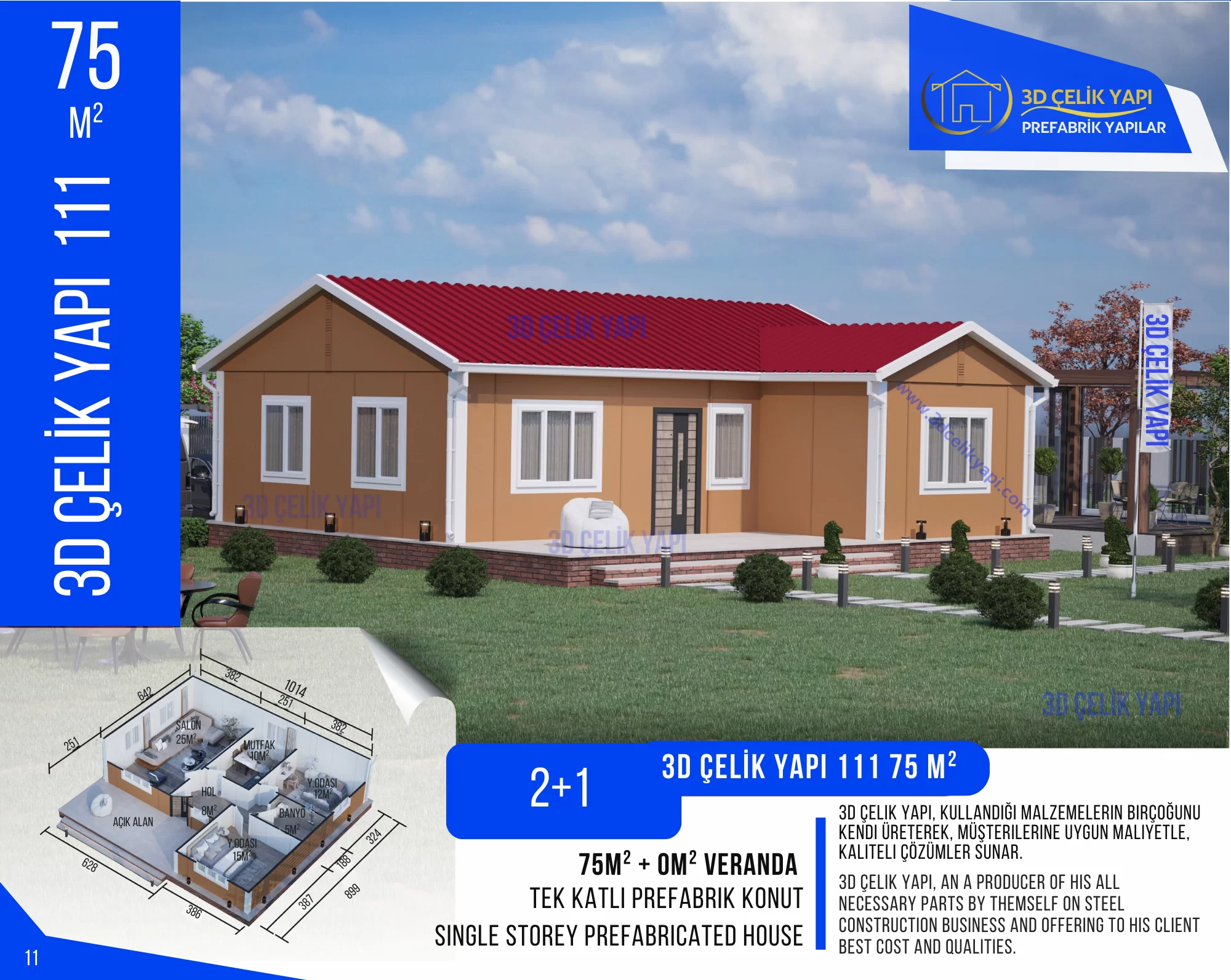 Tek Kat 75 m² 2+1 Prefabrik Evimiz Size Özel Tasarım