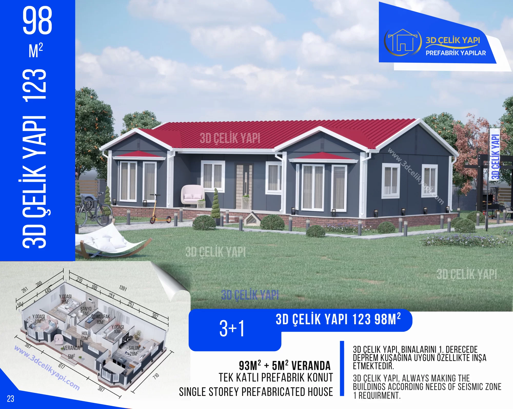 Geniş verandası bulunan yapımız 98 Metrekare kullanışlı bir yapıdır.